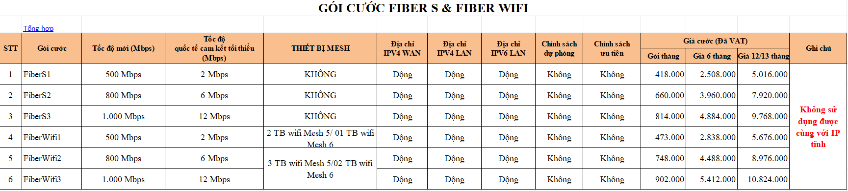 📶 2. Gói FIBER S & FIBER WIFI (Tối ưu quốc tế – có Mesh WiFi)