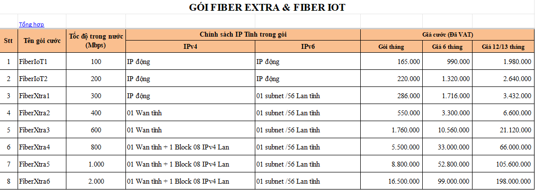 ⚙️ 3. Gói FIBER EXTRA & FIBER IOT (IP tĩnh – băng thông cao)